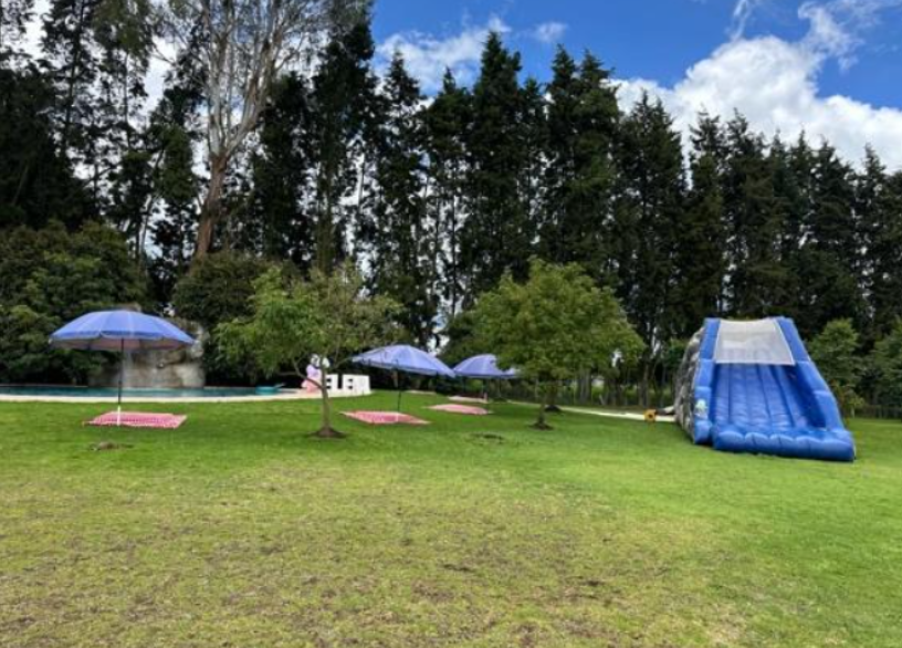 - Hay cascada, inflables, una pista de obstáculos.